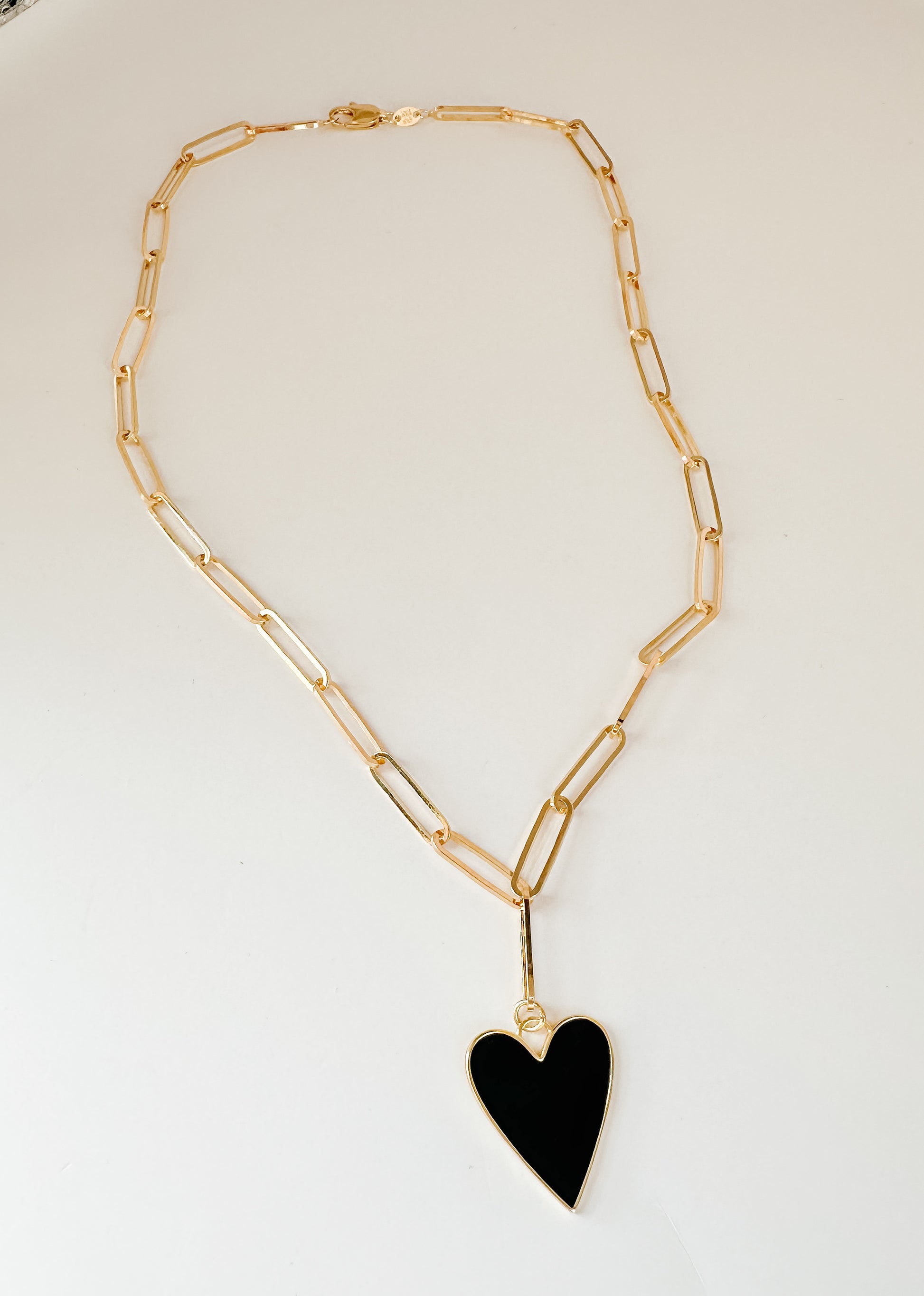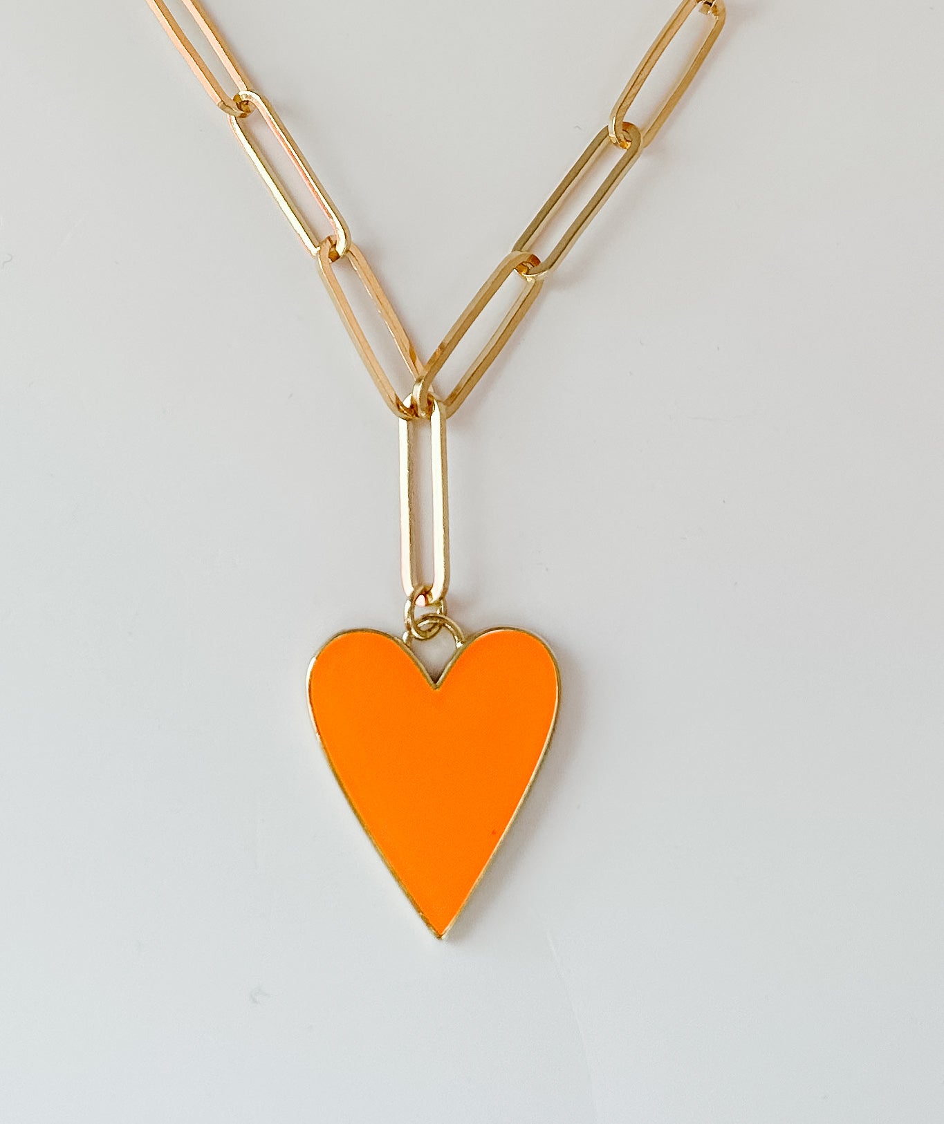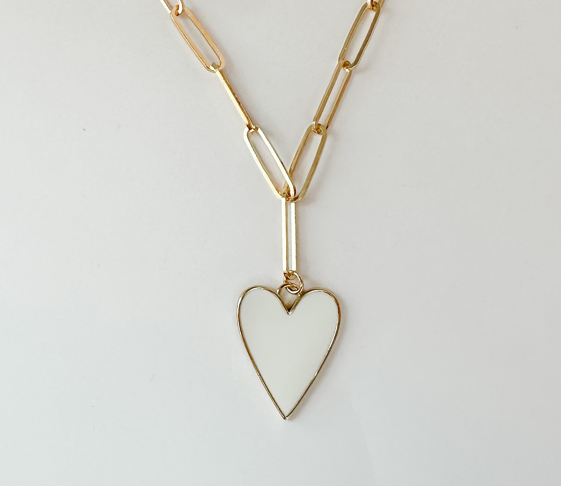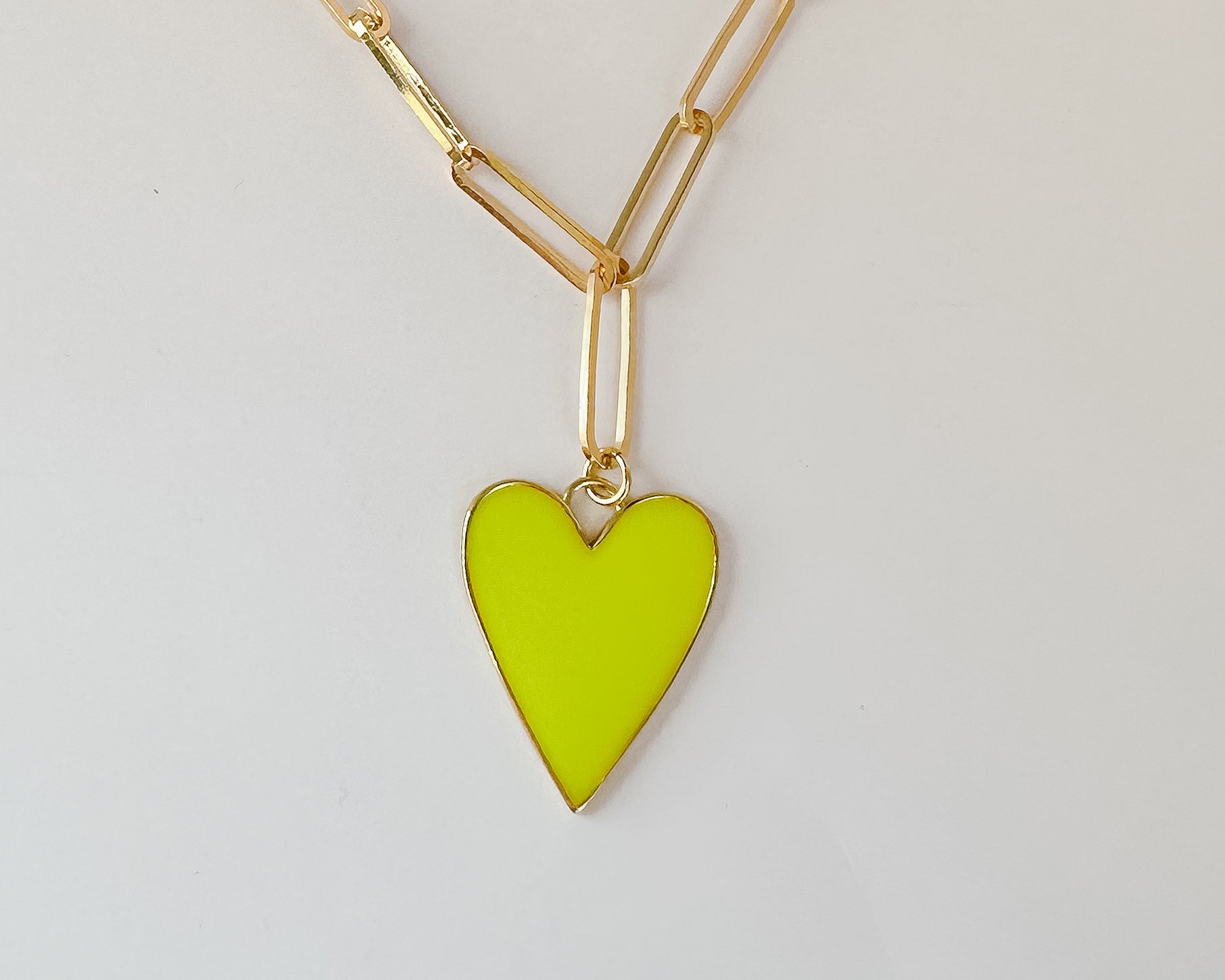 Featuring a luxe gold-filled paper clip chain and your choice of enamel heart charm, this piece says “I see you, I love you” without saying a word.