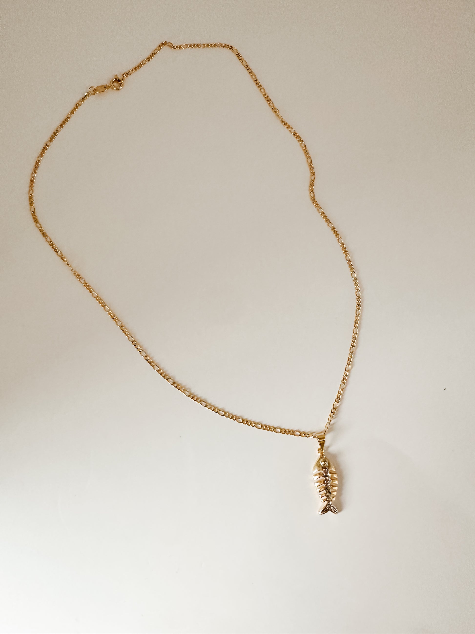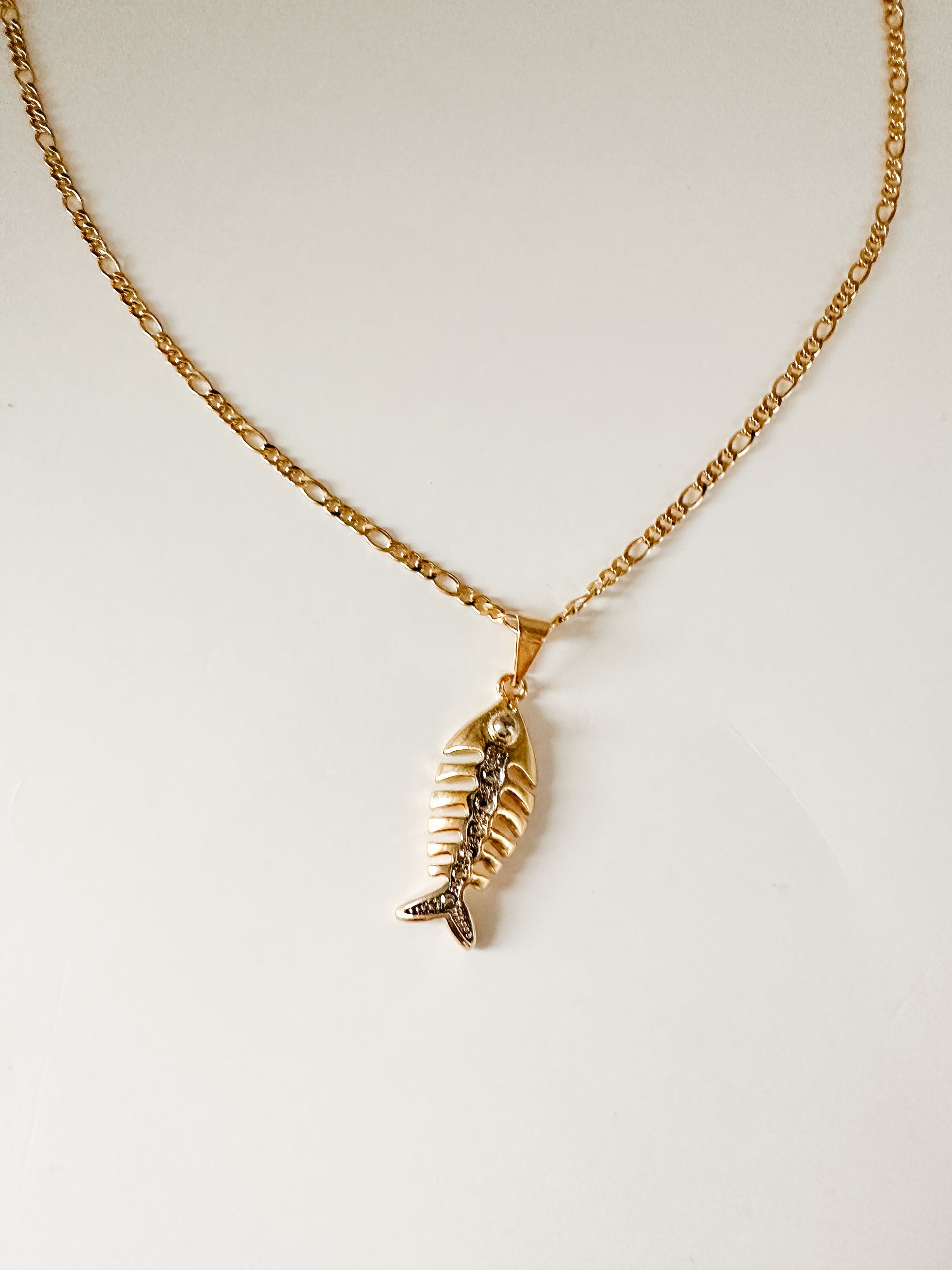 Make a bold statement without saying a word. This playful yet elevated necklace features a gold-plated fishbone charm on an 18-inch gold-filled Figaro chain — the perfect mix of edge and elegance. Inspired by the phrase “bigger fish to fry,” it’s made for those who know their worth and don’t settle for less.
