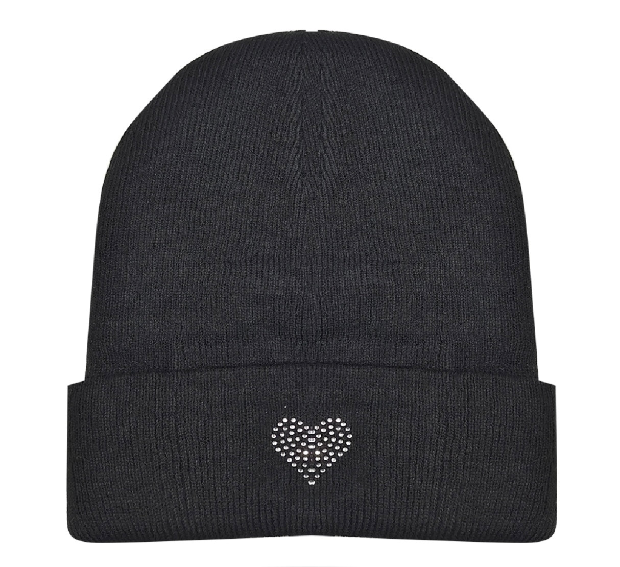 Wrap your head in luxury with this Ribbed Hat adorned with a sparkling crystal heart. The ribbed, foldover design adds texture and charm, while the crystal heart adds a touch of elegance. Stay warm and stylish this season with this must-have accessory.