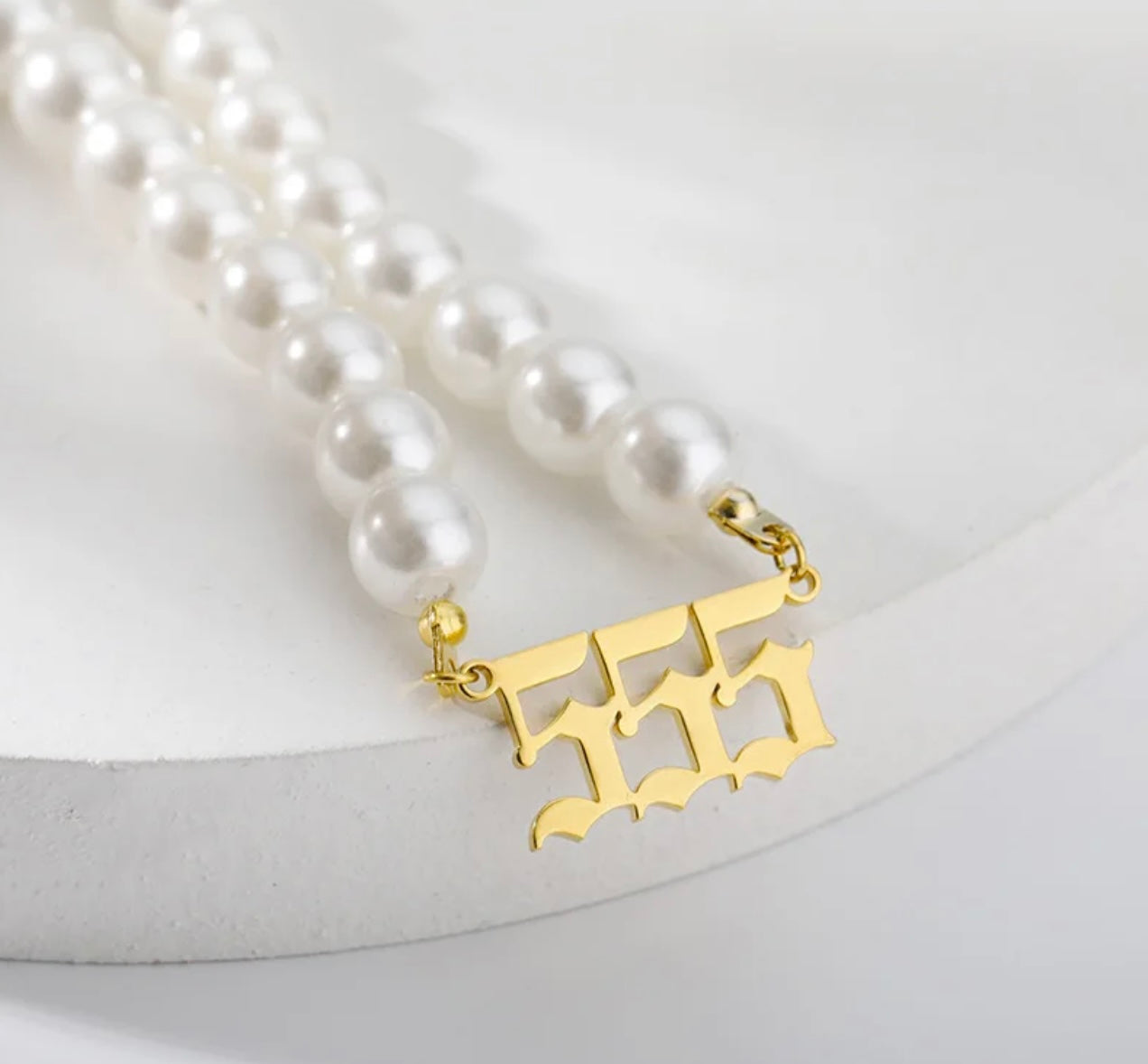 Your favorite angel number—now in chic pearl form. This necklace pairs glossy faux pearls with a gleaming gold-plated number charm so you can keep your lucky digits close to your heart.