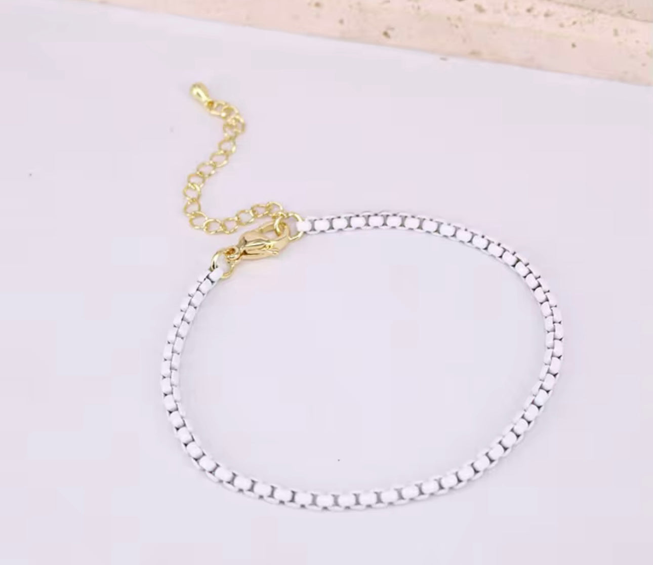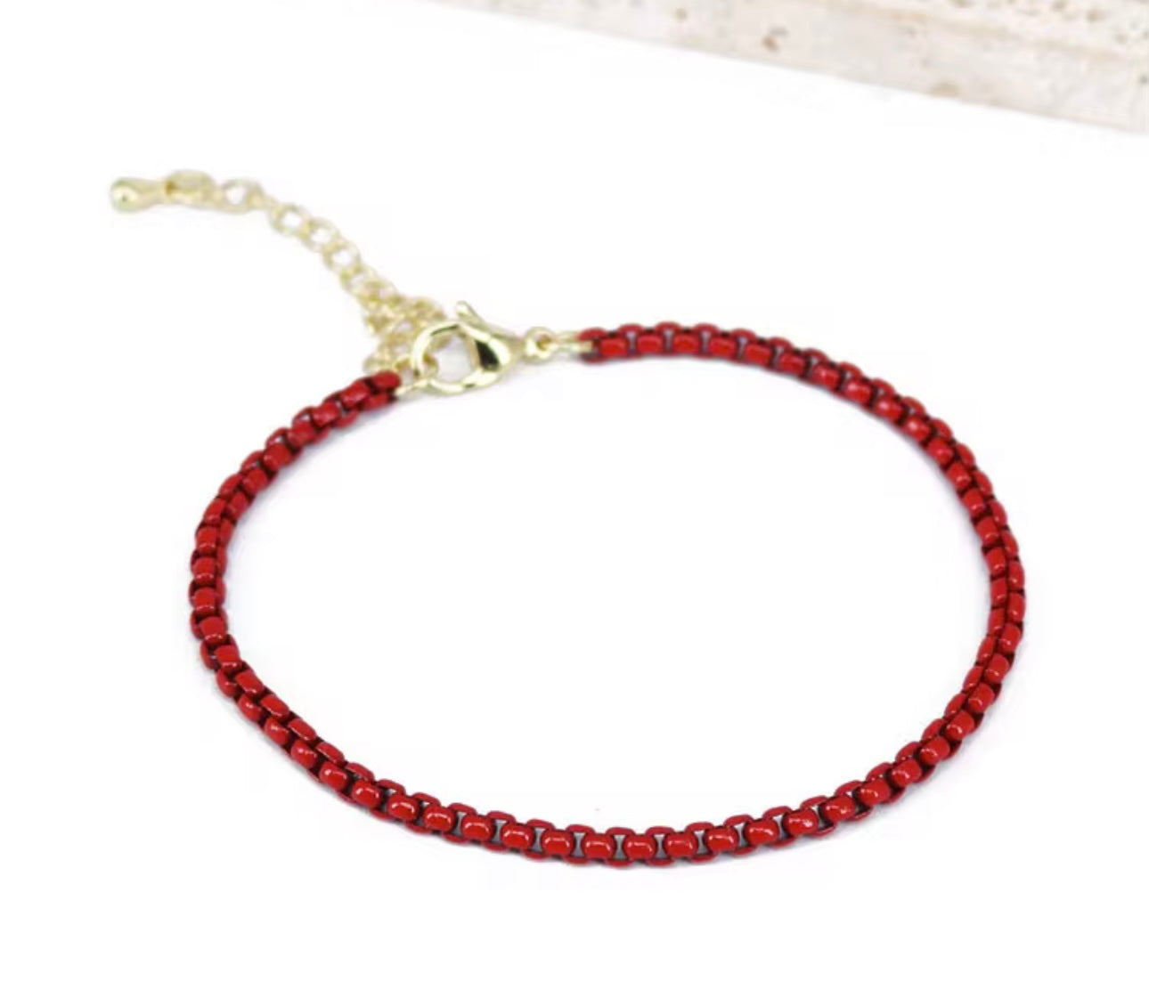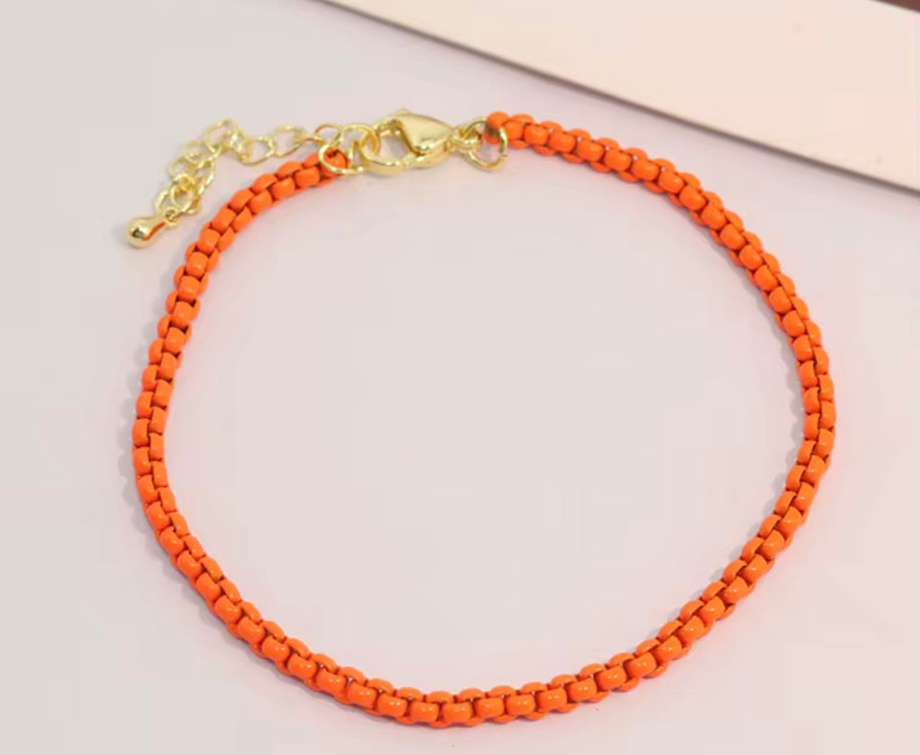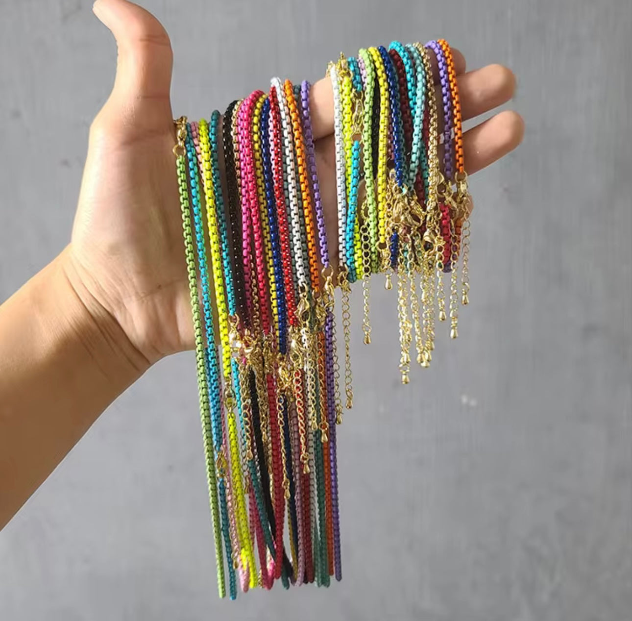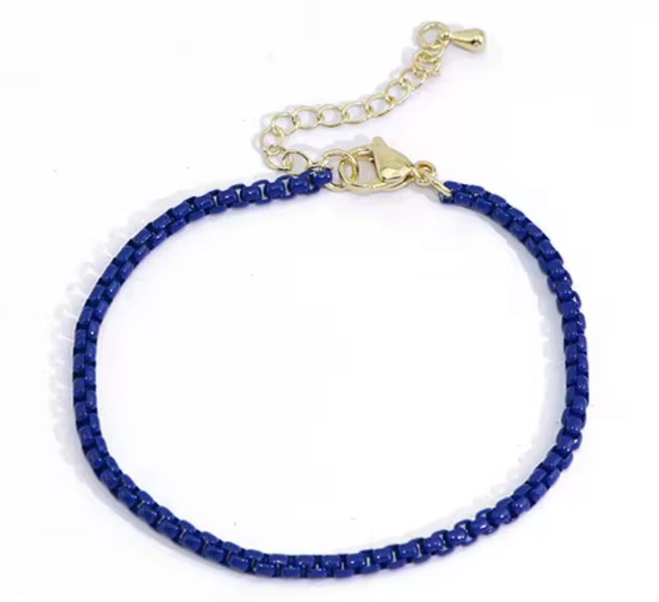 Simple, bold, and full of color—these vibrant box chain bracelets are your new everyday favorite. Each piece features a single pop of enamel-coated color with sleek gold hardware, perfect for stacking or wearing solo. Lightweight, durable, and adjustable for the perfect fit, they’re the easiest way to add some rainbow energy to your look.