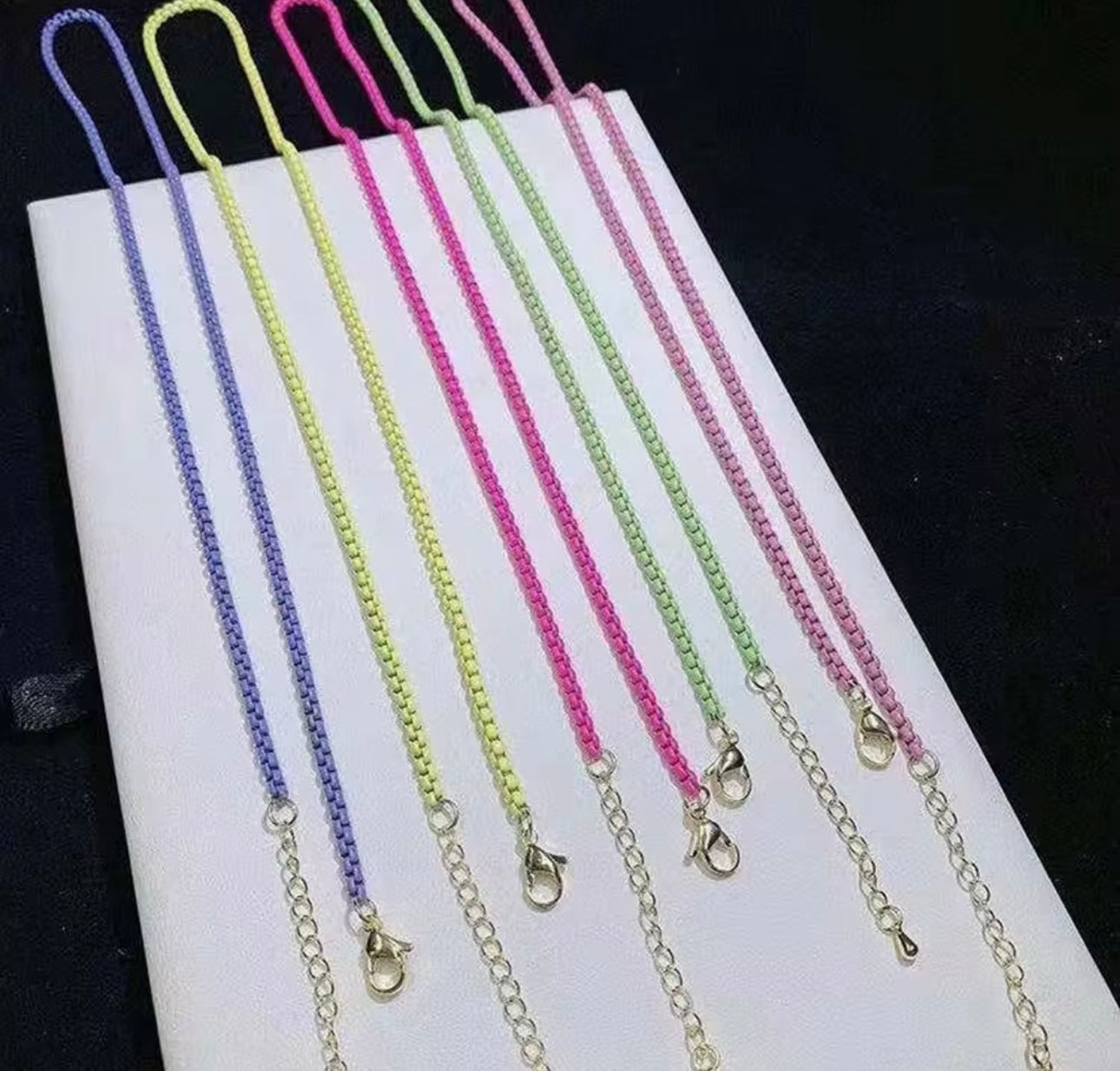 Add a pop of color to your everyday style with these bold and bright neon box chain necklaces. Made from lightweight metal with a smooth enamel coating, each chain brings major retro vibes and fun energy. Wear them solo or layer them up for a full rainbow moment—either way, you’re making a statement.