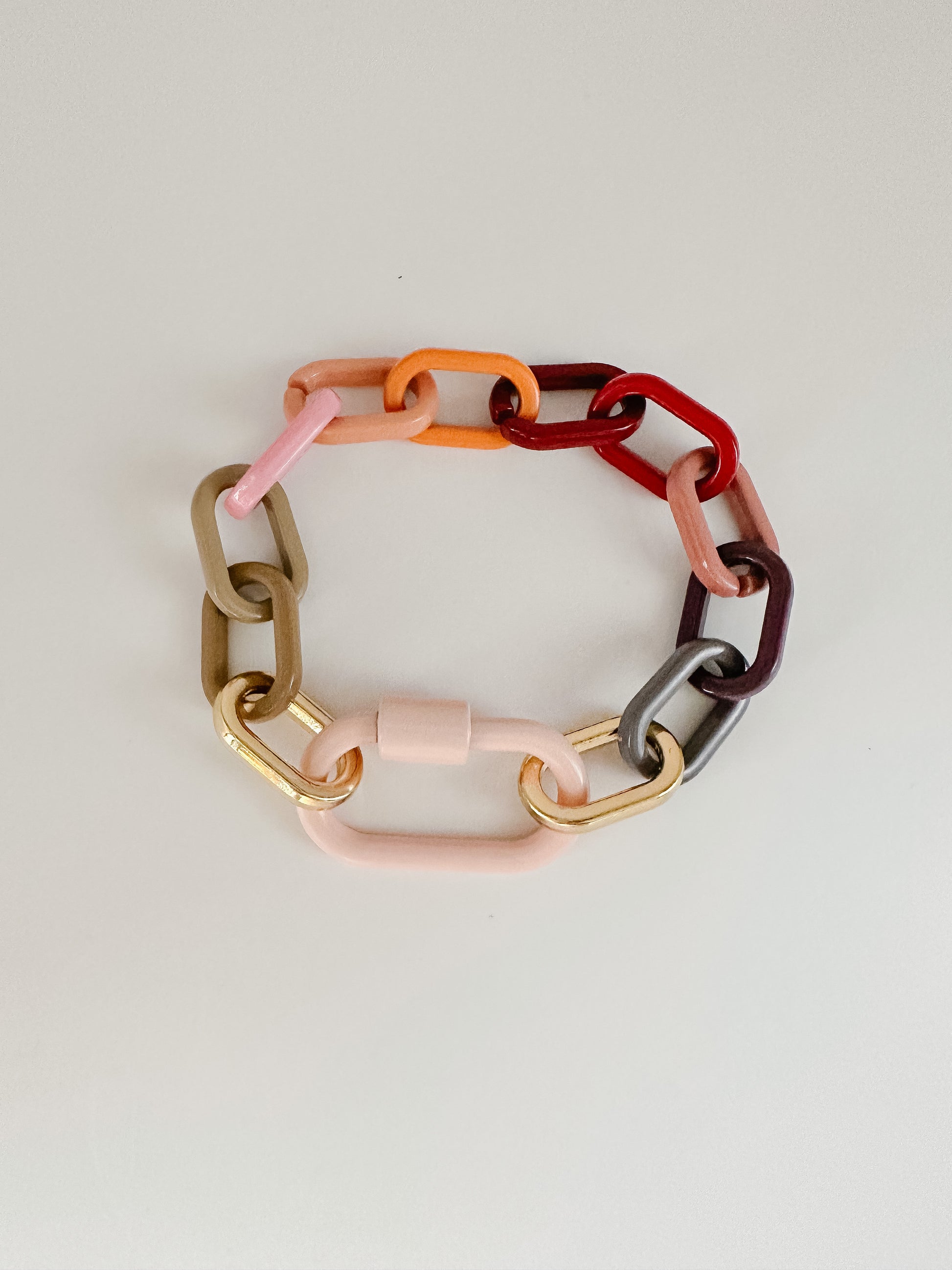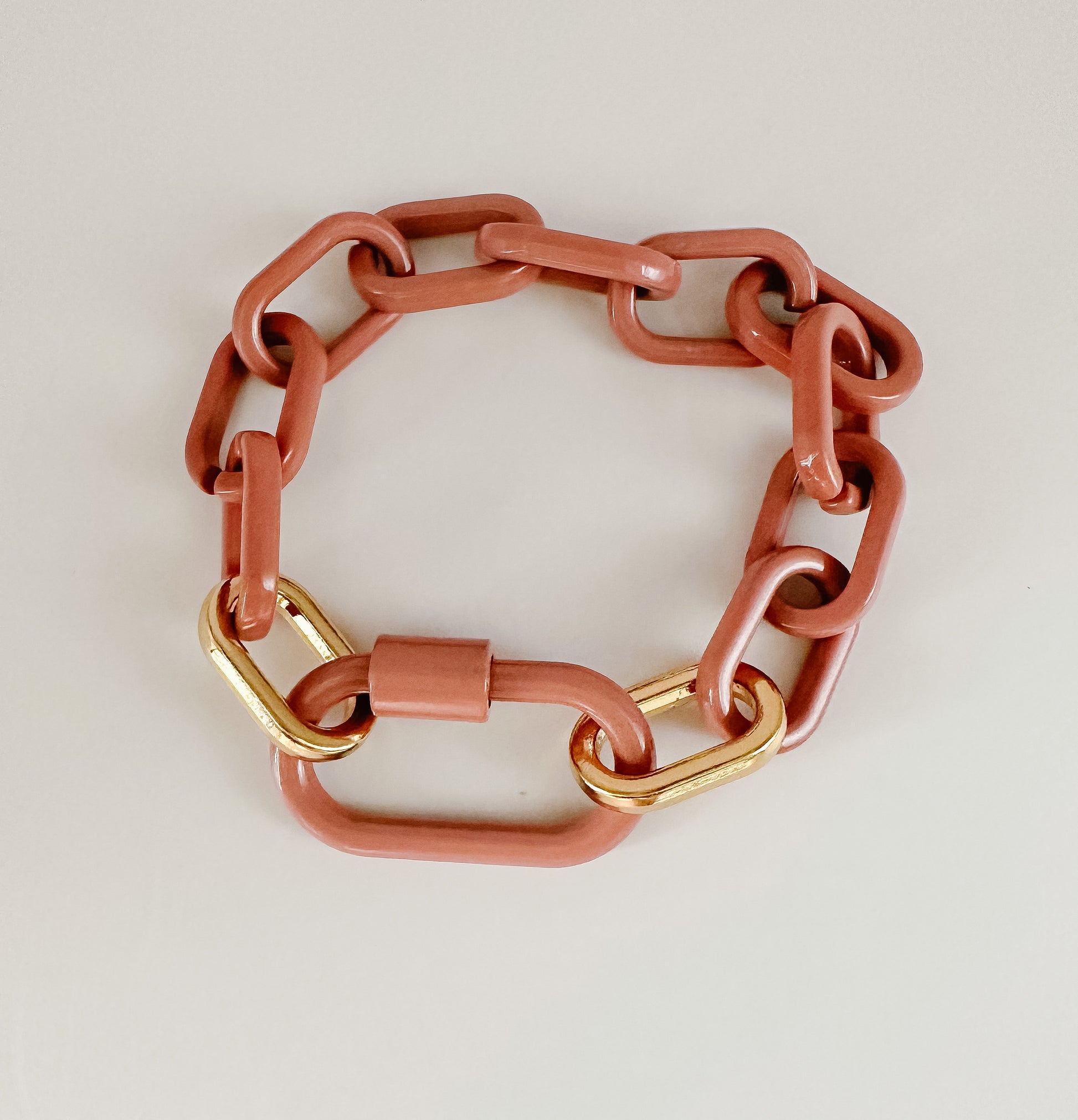 Bold and modern, this chunky link bracelet mixes sleek oversized links with striking gold accents for a look that’s both edgy and chic.