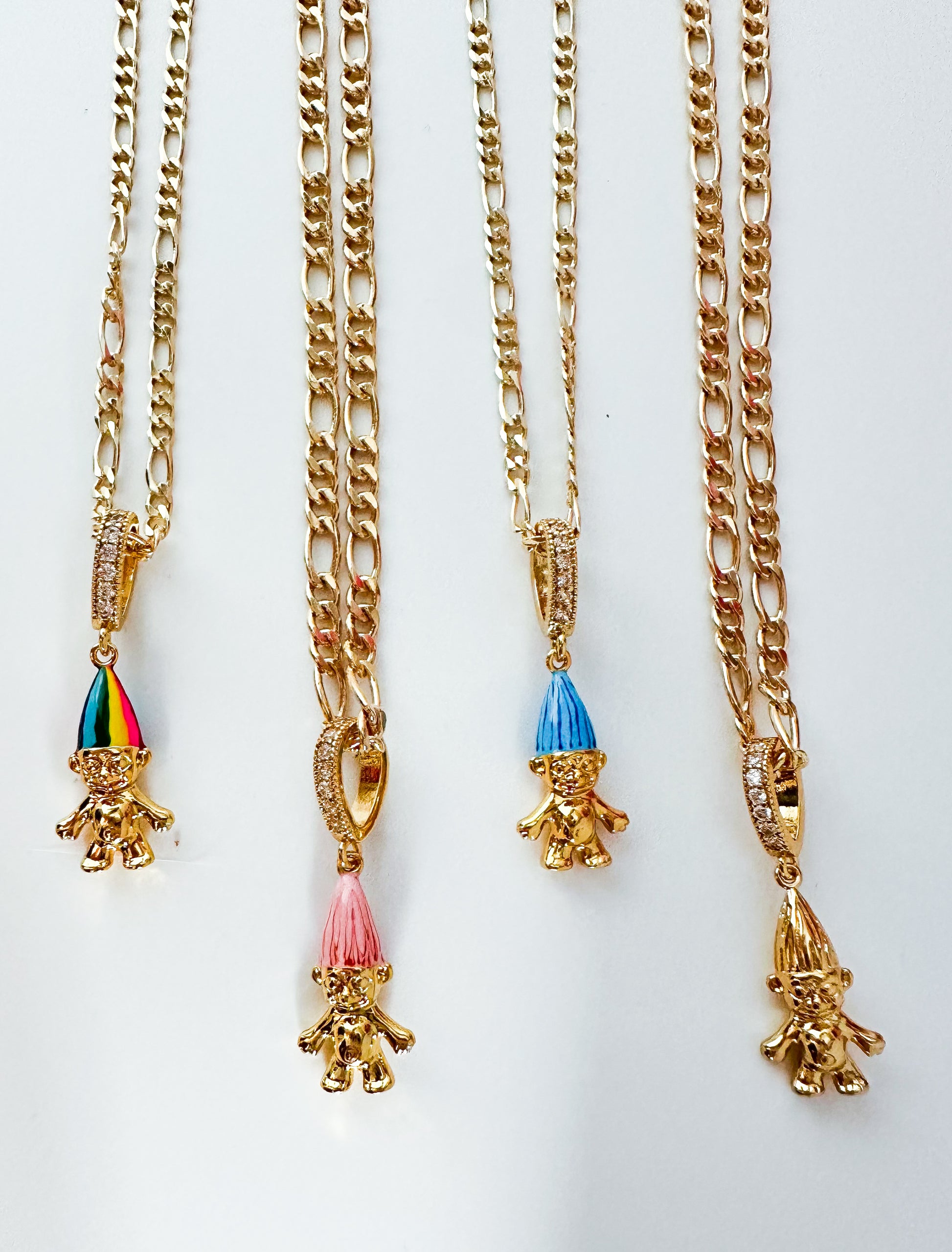 Channel your inner 90s kid with the ultimate nostalgic charm — the Troll we all loved (and maybe collected way too many of 👀). This playful piece features a glittery troll charm with colorful enamel hair, dangling from a luxe gold-filled chain. It’s a whole vibe — bold, cheeky, and a little magical ✨